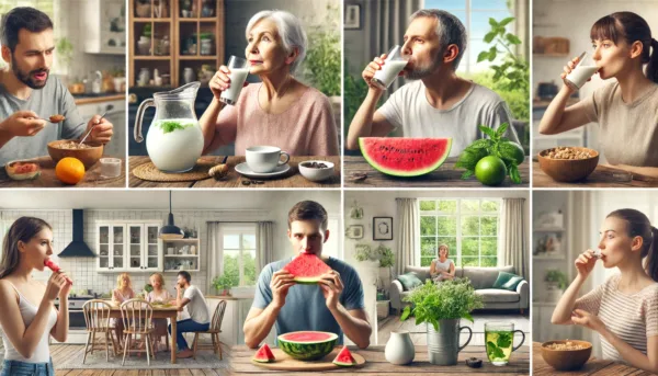 – Cucumber and Watermelon: These alkaline foods help neutralize the acid in the stomach.