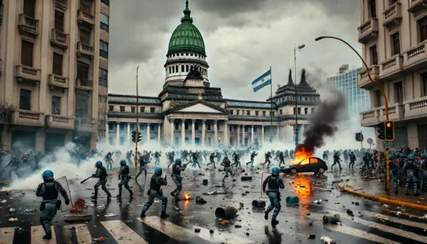 The streets of Buenos Aires, Argentina’s capital city, transformed into scenes of turmoil as riot police clashed with protesters outside the Congress building on Wednesday. Demonstrators, opposing a contentious budget reform package proposed by President Javier Milei, resorted to throwing petrol bombs and stones, escalating the confrontation to what local media described as a “battlefield.” The police responded with tear gas and water cannons in an attempt to control the crowd, which included numerous injured parties.