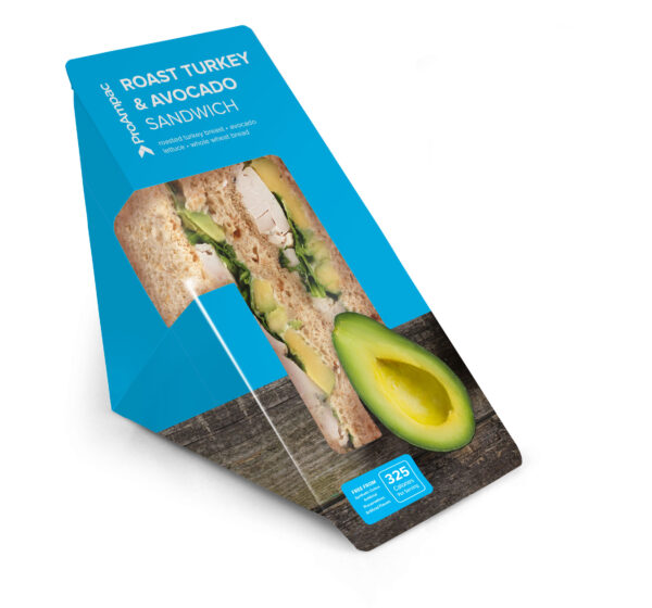 ProAmpac’s RAP Sandwich Wedge has been engineered to maximize product preservation and visibility, with the potential to keep food fresh for up to 28 days. It combines a carton board structure with a thin film lining, utilizing high barrier technology for optimal hermeticity.