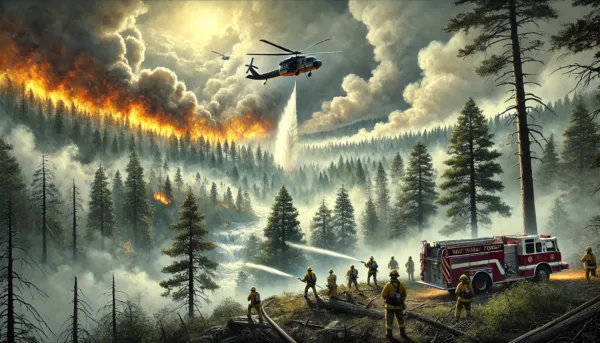 Officials have implemented advanced firefighting techniques, including backfire operations, which involve setting controlled burns ahead of the main fire to stop its spread. This strategic method, along with the use of helicopters capable of dropping up to 300 gallons of water, has been crucial in gaining the upper hand against the wildfire. The forest fire service continues to monitor and improve containment lines while mopping up any remaining hotspots.