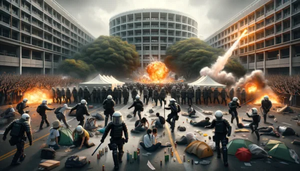 In a dramatic escalation of campus tensions, riot police clashed with demonstrators at the University of California, Los Angeles (UCLA) on Thursday. The officers, equipped in riot gear, dismantled barricades at a protest encampment, marking a significant intensification in a series of nationwide university protests related to Israel’s military actions in Gaza.